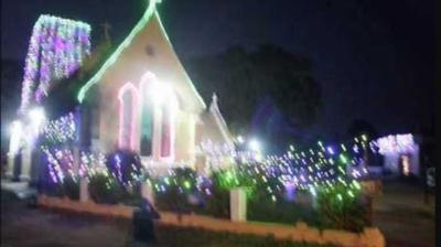 चर्च परिसर रंग-बिरंगी लाइट्स, क्रिसमस ट्री और यीशु मसीह की झांकियों से सजे