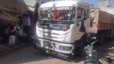 आधी रात गूगल मैप ने भटकाया, संकरी गली में फंसा ट्रेलर
