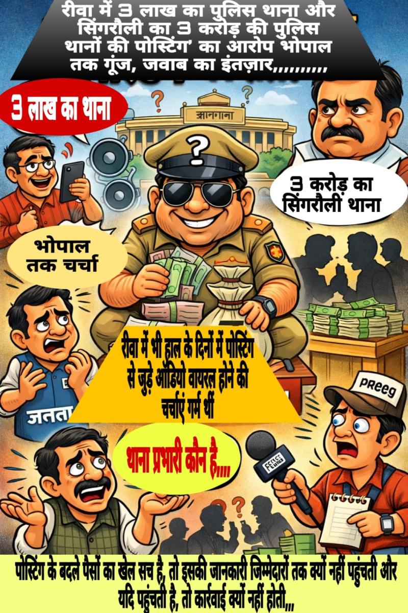 रीवा में 3 लाख का पुलिस थाना और सिंगरौली का 3 करोड़ की पुलिस थानों की पोस्टिंग’ का आरोप भोपाल तक गूंज, जवाब का इंतज़ार,,,,,,,,,,