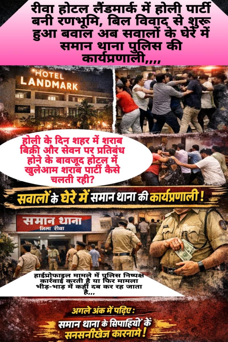 रीवा होटल लैंडमार्क में होली पार्टी बनी रणभूमि, बिल विवाद से शुरू हुआ बवाल अब सवालों के घेरे में समान थाना पुलिस की कार्यप्रणाली,