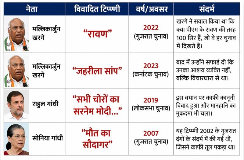 भाजपा ने इस बयान पर कड़ी आपत्ति जताते हुए इसे राजनीतिक मर्यादाओं का उल्लंघन बताया है। हालाँकि, यह पहली बार नहीं है जब कांग्रेस के शीर्ष नेतृत्व ने प्रधानमंत्री पर इस तरह के तीखे प्रहार किए हों।