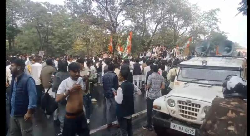 युवा कांग्रेस के नवनिर्वाचित प्रदेश अध्यक्ष यश घनगोरियाके पदभार ग्रहण समारोह के तुरंत बाद यूथ कांग्रेस ने चुनाव आयोग कार्यालय का रुख किया जिसे पुलिस ने बीच में ही रोक दिया यूथ कांग्रेस के कार्यकर्ताओं को रोकने के लिए पुलिस को वाटर कैनन का उपयोग करना पड़ा वहीं योग के कार्यकर्ता भी पूरी मुस्तैदी से डटे रहे और नारेबाजी करते रहे कांग्रेसियों का कहना है कि जब भी सरकार की गलत नीतियों के खिलाफ आवाज उठाई जाती है तब सरकार उन्हें दबाने में लग जाती लेकिन अब यूथ कांग्रेस शांत बैठने वाली नहीं है....वोट चोर गद्दी छोड़ आंदोलन का शंखनाथ युवक कांग्रेस ने किया जोरदार प्रदर्शन