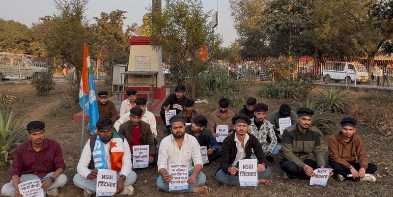 भोपाल,NSUI के राष्ट्रीय अध्यक्ष वरुण चौधरी की गिरफ्तारी के विरोध में आज राजधानी भोपाल में गांधी प्रतिमा के समक्ष एनएसयूआई द्वारा गांधीवादी तरीके से शांतिपूर्ण मौन प्रदर्शन किया गया। यह प्रदर्शन लोकतांत्रिक अधिकारों पर हो रहे हमलों और शांतिपूर्ण आंदोलनों को दबाने की प्रवृत्ति के खिलाफ एक प्रतीकात्मक विरोध था।