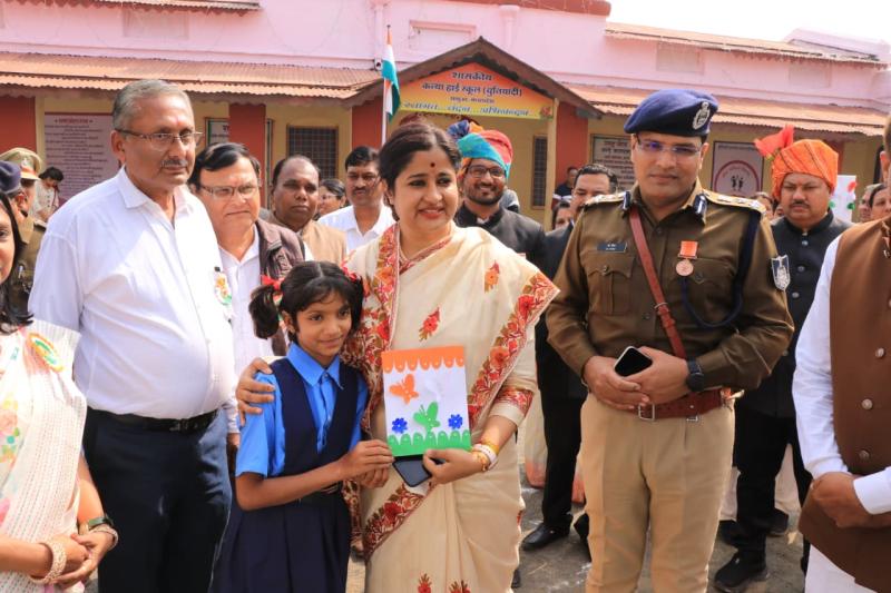 झाबुआ, 26 जनवरी 2026। 77वें गणतंत्र दिवस के अवसर पर आयोजित जिला स्तरीय मुख्य समारोह के पश्चात कलेक्टर नेहा मीना एवं पुलिस अधीक्षक डॉ. शिवदयाल सिंह शासकीय कन्या हाई स्कूल बुनियादी झाबुआ पहुंचे। विद्यालय पहुंचने पर छात्राओं द्वारा हस्तनिर्मित सामग्री भेंट कर मुख्य अतिथियों का आत्मीय एवं उत्साहपूर्ण स्वागत किया गया। कार्यक्रम का शुभारम्भ विद्यालय परिसर में माँ सरस्वती के विधिवत पूजन के साथ किया गया। इसके उपरान्त कलेक्टर नेहा मीना एवं पुलिस अधीक्षक डॉ. शिवदयाल सिंह द्वारा विद्यालय परिसर में पौधारोपण कर पर्यावरण संरक्षण एवं हरित भविष्य का संदेश दिया गया। इस अवसर पर उन्होंने छात्राओं को 77वें गणतंत्र दिवस की हार्दिक शुभकामनाएं एवं बधाई दी। कलेक्टर ने कहा कि गणतंत्र दिवस हमारे संविधान, अधिकारों एवं कर्तव्यों का स्मरण कराने वाला पर्व है। उन्होंने छात्राओं से अनुशासन, परिश्रम एवं आत्मविश्वास के साथ अध्ययन कर आत्मनिर्भर बनने तथा समाज एवं राष्ट्र के निर्माण में सक्रिय भूमिका निभाने का आह्वान किया। पुलिस अधीक्षक डॉ. शिवदयाल सिंह ने भी छात्राओं को जीवन में अनुशासन, नियमों के पालन एवं सकारात्मक सोच के साथ आगे बढ़ने हेतु प्रेरित किया। उल्लेखनीय है कि प्रधानमंत्री पोषण शक्ति निर्माण योजना (पूर्व में मध्यान्ह भोजन योजना) का शुभारम्भ 15 अगस्त 1995 को किया गया था। योजना के अंतर्गत राष्ट्रीय पर्वों के अवसर पर मुख्य अतिथियों द्वारा विद्यार्थियों के साथ भोजन ग्रहण कर पर्व मनाने की परंपरा रही है। इसी क्रम में गणतंत्र दिवस के अवसर पर कलेक्टर एवं पुलिस अधीक्षक द्वारा छात्राओं के साथ मध्यान्ह भोजन ग्रहण किया गया। इस दौरान छात्राओं द्वारा मुख्य अतिथियों के हाथों में रक्षासूत्र बांधा गया, जिससे कार्यक्रम में स्नेह, अपनत्व एवं सौहार्द का भाव परिलक्षित हुआ। संपूर्ण कार्यक्रम उत्साहपूर्ण, प्रेरणादायी एवं गरिमामय वातावरण में सम्पन्न हुआ।