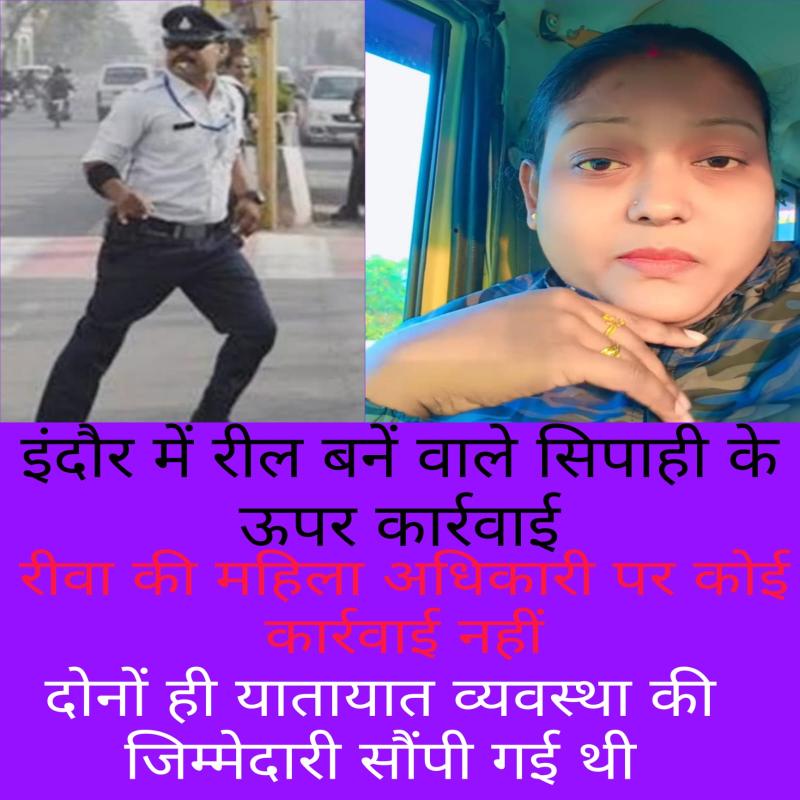 ऐसा ही मामला सामने आया है मध्य प्रदेश के इंदौर पुलिस से जुड़ा, जहाँ रील बनाने का शौक एक प्रधान आरक्षक को महँगा पड़ गया, लेकिन रीवा शहर की यातायात प्रभारी अनिमा शर्मा की वही गलती दूसरी ओर बिना सज़ा के छूटती नजर आई,,,