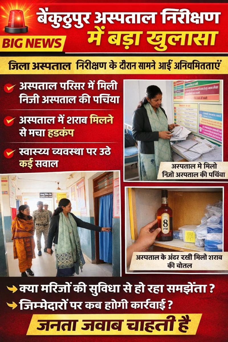 स्वास्थ्य सेवाएं किसी भी समाज की बुनियाद होती हैं। यदि अस्पतालों में डॉक्टर गायब हों, रजिस्टर खाली हों और मरीजों को भोजन तक न मिले, तो यह केवल प्रशासनिक चूक नहीं, बल्कि सामाजिक चिंता का विषय है,,,
