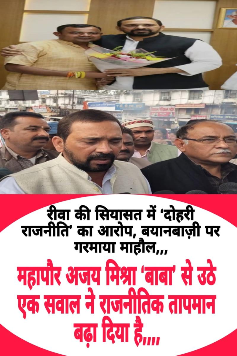 रीवा की सियासत में ‘दोहरी राजनीति’ का आरोप, बयानबाज़ी पर गरमाया माहौल,,,
