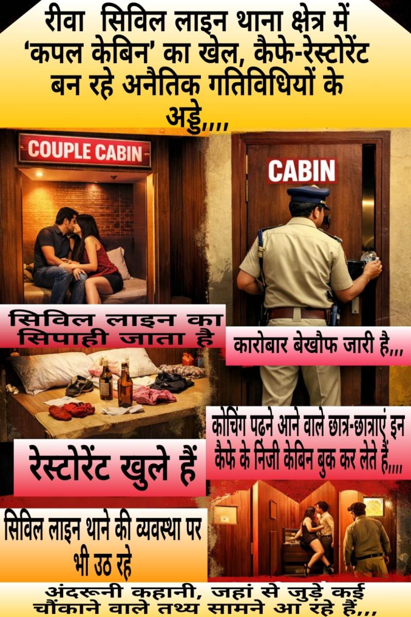 रीवा सिविल लाइन थाना क्षेत्र में ‘कपल केबिन’ का खेल, कैफे-रेस्टोरेंट बन रहे अनैतिक गतिविधियों के अड्डे,,,,
