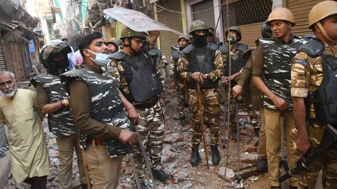 ध्वस्तीकरण के दौरान भारी पुलिस बल रहा तैनात