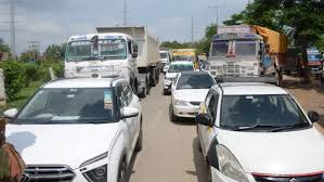 NH-130 जाम, गाड़ियों की लगी लंबी लाईन