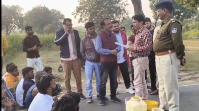 शिवसेना संभाग प्रमुख पवन पटेल के नेतृत्व में कोतमा भालूमाड़ा गोविंदा तिराहे पर चक्काजाम