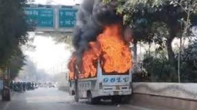 विधायक की बस में आग लगने से अफरा-तफरी, जांच शुरू