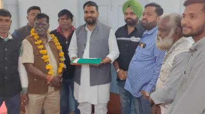 कांग्रेस कार्यालय के लिए जिला कांग्रेस अध्यक्ष को पार्टी का ध्वज किया भेंट