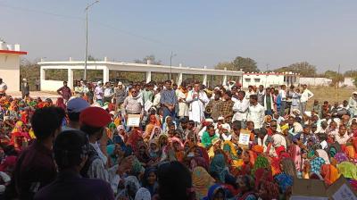मुआवजा नहीं मिलने से नाराज किसानों-आदिवासियों का प्रदर्शन